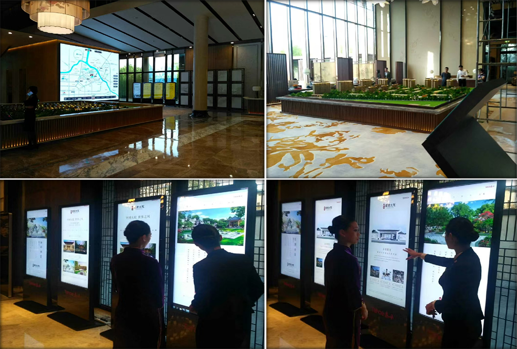 2、地产销售中心落地式触摸广告屏:通过人机互动的体验方式将企业介绍、企业的成功案例、荣誉荣耀、品牌文化、业主活动、周边环境、物业项目、小区配套设施、样板虚拟现实、交楼流程、房源数量、口碑赠言等展示出来,让购房者全方面了解企业。
