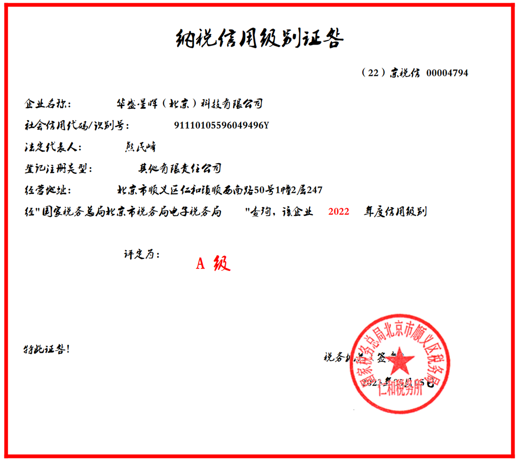 我司始终秉承“诚信经营、依法纳税”理念,重视财务工作,守法经营,认真履行纳税义务,积极配合税务机关开展工作,严格执行税收法律和法规。此次获评“纳税信用A级企业”,不仅是对我公司规范财务管理的充分肯定,也提升了我公司诚实守信的良好企业形象。在今后的发展中,我公司将继续营造守法经营、依法纳税的和谐环境做出自己的贡献。